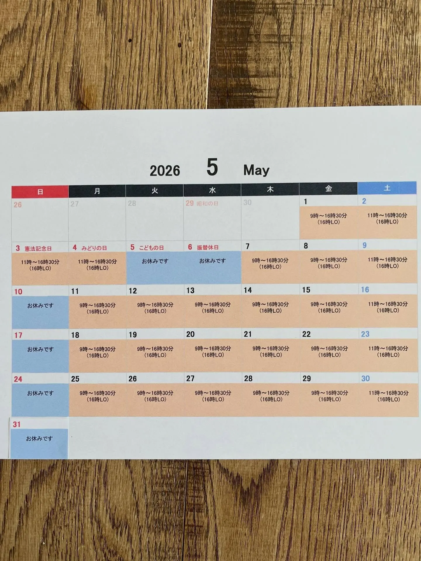 5月、営業日のお知らせです😊