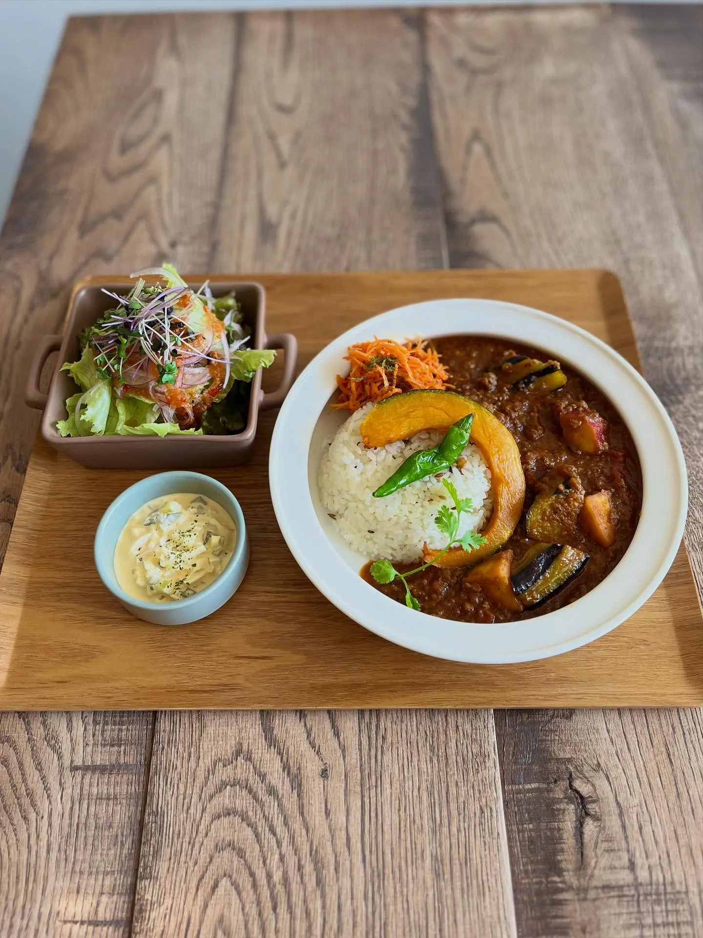 #香川県 #三豊市 #カフェ #むく食堂 #香川県#三豊市#カフェ#むく食堂こんばんは、おやつ係です😊先日からほぼ週替わりカレーが【秋野菜のキーマカレー】に替わりました🍛✨旨みたっぷりの国産合挽肉キーマカレーに、旬の野菜が入った秋を感じる…